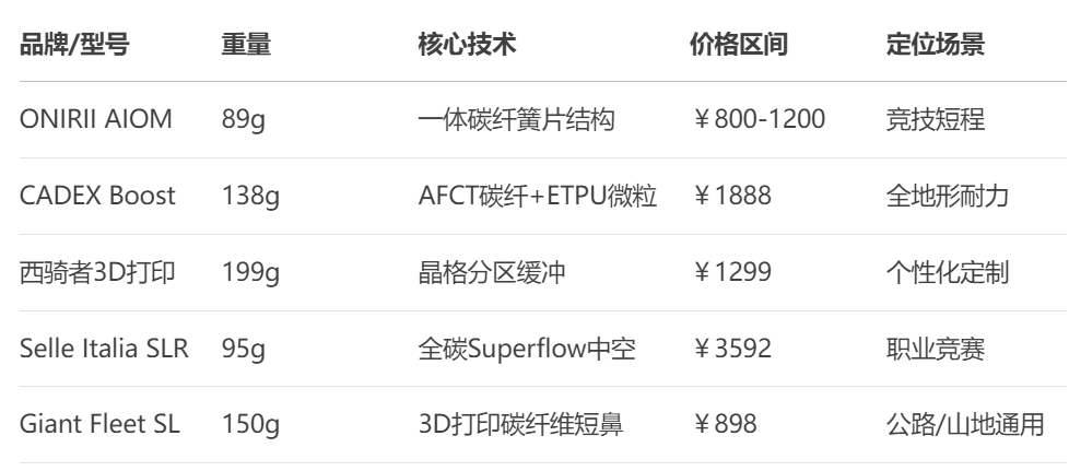 以下是不同品牌的碳纖維自行車坐墊的對比及應(yīng)用場景: